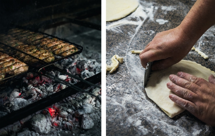 30 минут езды в маршрутке — консервной банке, и машина остановилась у невзрачного здания прямо на обочине. У окошка "с собой" выстроилась длинная очередь за свежей выпечкой: традиционные пироги, хлеба, печенье и внезапные шоколадные маффины аппетитно лежали на витрине. Долгие годы здесь был гастроном, а затем открылось маленькое кафе Kakhelebi. В тесной комнате была всего пара столов. Гостям предлагали три блюда: шашлык, хашламу (тушёные части телёнка. — Прим. автора) и татариахни (суп из говядины. — Прим. автора). Готовили вкусно и с душой. За 10 лет работы ресторан разросся до восьми столов и стал известен на весь мир благодаря своей честной еде. Сюда приходят политики и артисты, а также водители и пассажиры любого проезжающего транспорта. Никакой напыщенности и "задранных" ценников. Во всём проявляется домашнее хозяйское радушие.