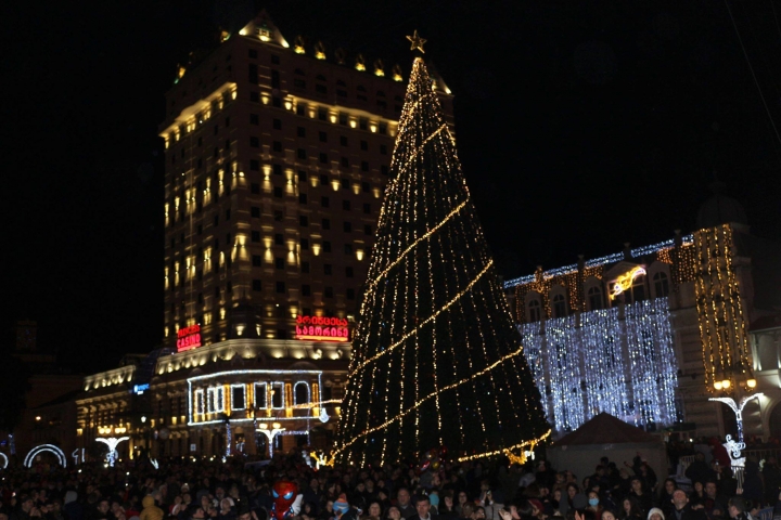 В Батуми зажгли главную новогоднюю елку, установленную на Площади Европы.