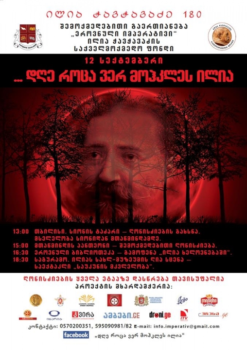 Мероприятия под символическим названием «День, когда не смогли убить Илью», пройдут 12 сентября в Тбилиси и в Сагурамо (поселок в Мцхета-Мтианети) – близ дороги, на которой был убит Чавчавадзе.