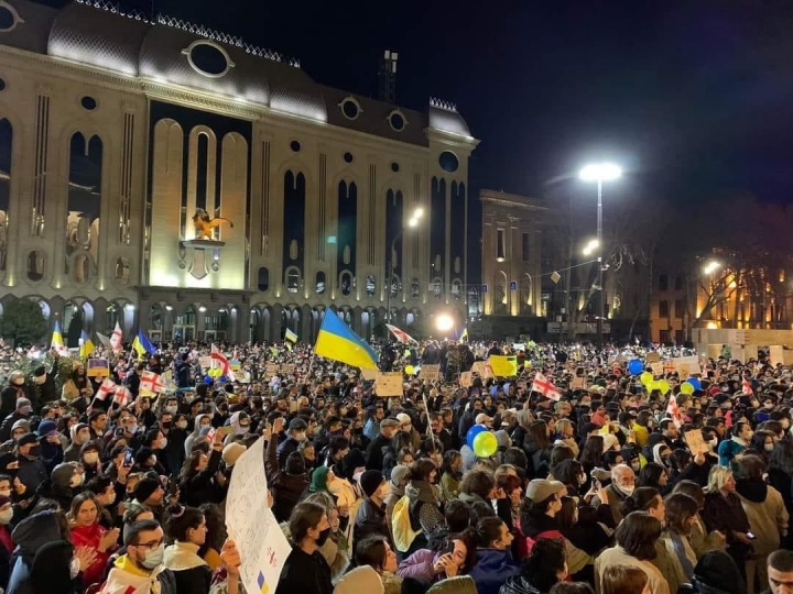 Очередная многочисленная акция в поддержку Украины проходит у парламента Грузии в центре Тбилиси.