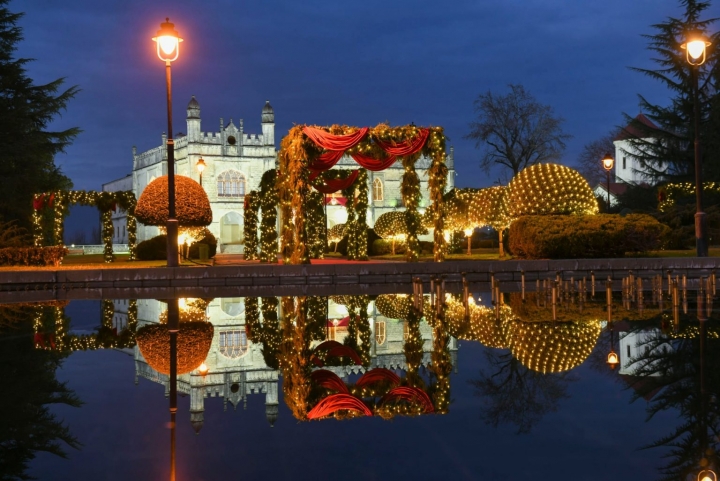 После съемок новогодняя иллюминация и украшения останутся во дворце до конца новогодних праздников, так что с 29 декабря все желающие смогут посетить украшенный к Рождеству дворец Дадиани, в том числе и бальный зал.