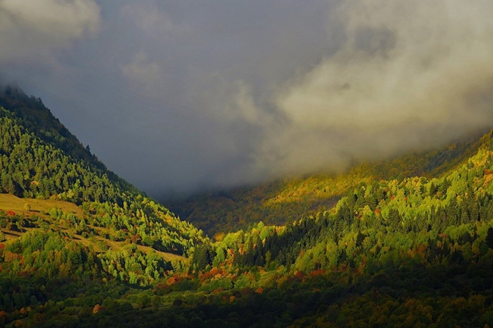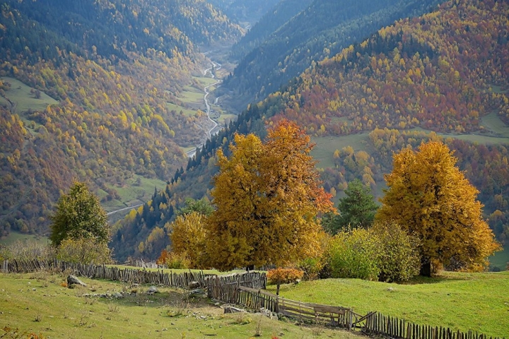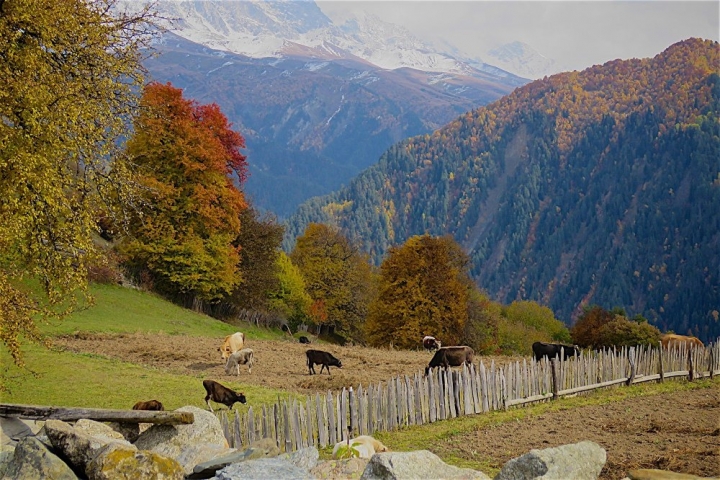 Впечатляющие горные пейзажи, кружащий голову чистый воздух, неповторимая природа и древняя история — этим Сванетия может удивить любого человека и покорить его сердце. Несмотря на то, что сейчас уже середина осени, в высокогорном регионе еще не так холодно. В это время года природа Сванети словно расцветает буйством красок и становится еще прекраснее, чем летом.