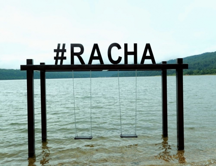 На территории озера, расположенного на высоте более 1,1 тысячи метров над уровнем моря, появилось несколько больших рамок, с помощью которых все путешественники смогут сделать оригинальные фото. На конструкциях изображен бренд администрации туризма, хештег-признание в любви Раче и т.д..