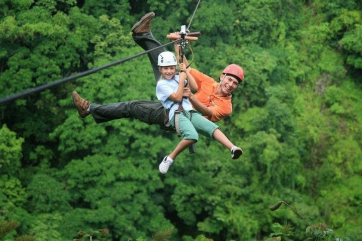 Зиплайн – это скоростная трасса для экстремального спуска по стальному канату. На тросе закреплены движущиеся роллеры, с помощью которых можно добраться из пункта А в пункт Б.
