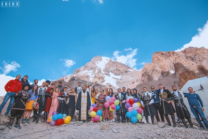 После того, как Бежан и Ия расписались в Тбилиси, в Доме юстиции, они вместе с гостями отправились в поселок Степанцминда. Многое надо было решать на ходу – например, пришлось нанять лошадей для того, чтобы перевезти на вершину трехдневный запас продуктов.