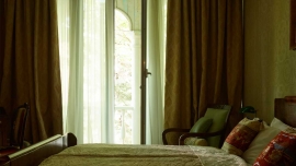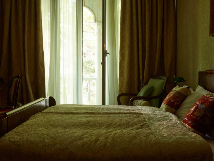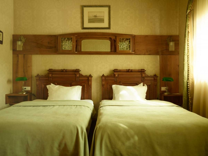 Мебель из прекрасного грецкого ореха и дуба украшают улучшенные номера: письменный стол, диван, шкаф, затемненные шторы, двуспальная кровать, латексный матрас, вручную обработанные стены, полностью оборудованная ванная комната. Античные Грузинские и Карабахские ковры изящно покрывают паркетный пол. Балкон с видом на церковь и на нашу террасу - изюминка этого номера.