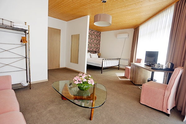 Номера люкс гостиницы «Вардзия Резорт» вызовет в гостях ощущение уюта и пребывания дома. Из просторных окон и террас номеров открываются завораживающие виды на исторический монастырский комплекс Вардзия. На террасах Вас ожидают маленький круглый столик и два комфортных стула. Уютные номера люкс, интерьер которых решен в элегантном классическом стиле – это бескомпромиссное решение для тех, кто экономит и ценит эстетику и комфорт отеля высокого класса.</p>