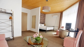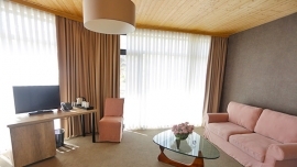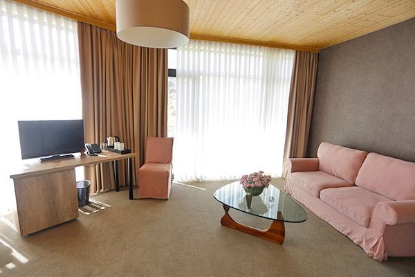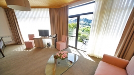 Для обеспечения максимального уюта и комфорта каждый номер категории люкс решен в пастельных тонах. Изысканный классический интерьер, элегантная мебель из натурального дерева, потрясающе удобные кровати с ортопедическими матрасами – важные характеристики номеров категории люкс гостиницы «Вардзия Резорт». Каждый из номеров люкс снабжены рабочим уголком, бесплатным беспроводным интернетом, LED-телевизором, большим зеркалом и функциональным гардеробом, феном, предметами личной гигиены, надежным сейфом и индивидуальным климат-контролем.</p>