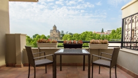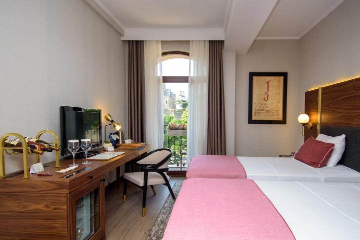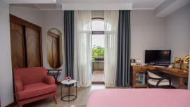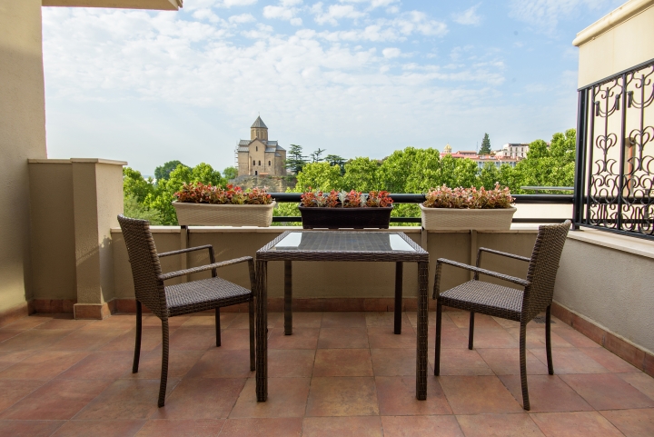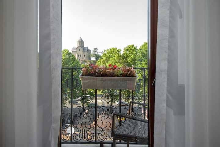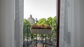 В категории "Классик Элеганс" представленный комнаты размером около 22кв. м., с балконами и красивым видом на реку и церковь Метехи.