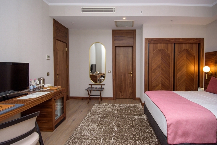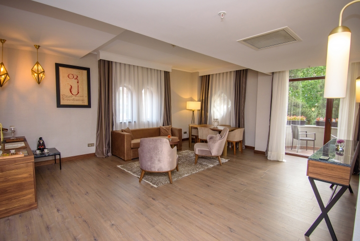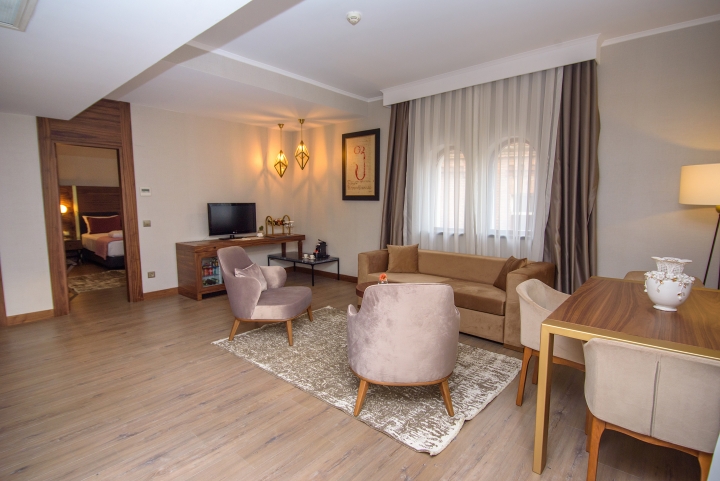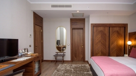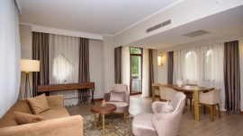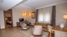 Номера категории Премиум Сьют являются комнаты размером около 60 кв. м., состоящим из просторной спальни - с большой кроватью, отдельной гостевой/столовой комнаты с раскладным диваном и двух роскошных ванных комнат.