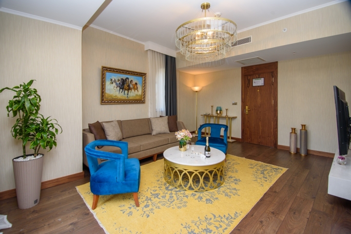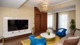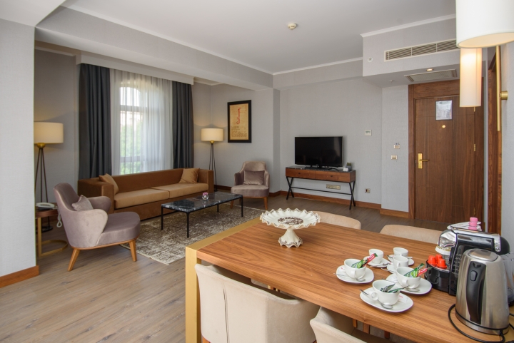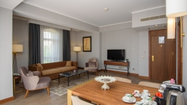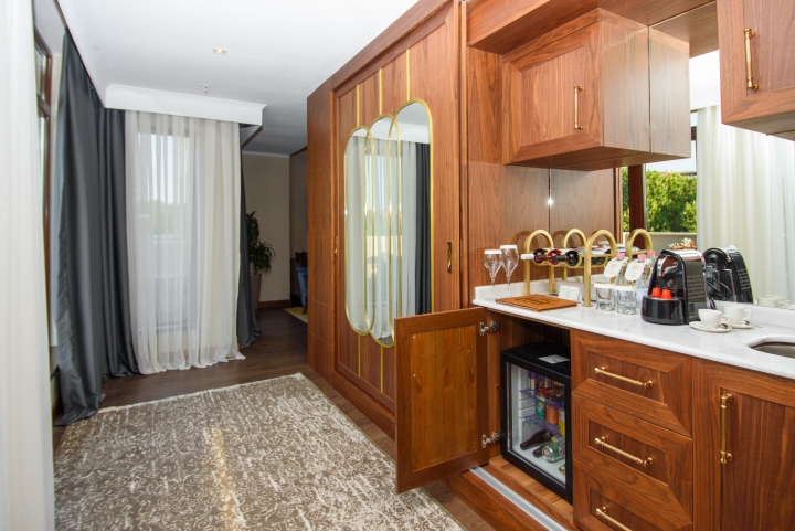 Номера категории Представительский Сьют, являются комнаты размером 80 кв. м., состоящим из просторной спальни - с большой кроватью, отдельной гостевой/столовой комнаты, маленькой кухней и двух роскошных ванных комнат.