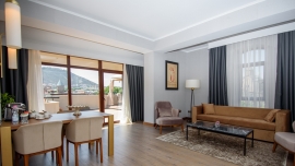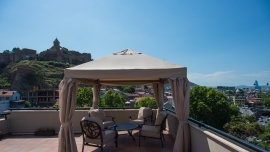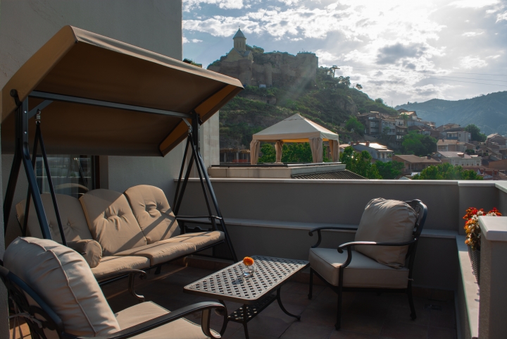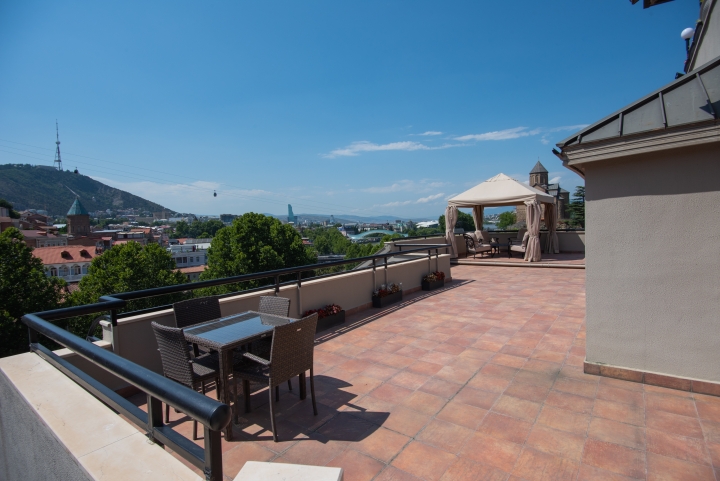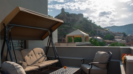 Комнаты полны света и пространства, оформлены элегантной мебелью, а благодаря просторной террасе, есть возможность насладиться потрясающими видами на наиболее популярные туристические достопримечательности, такие как – набережная Куры, Серные бани, крепость «Нарикала» и плащадь «Мейдан», церковь и мост «Метехи».
